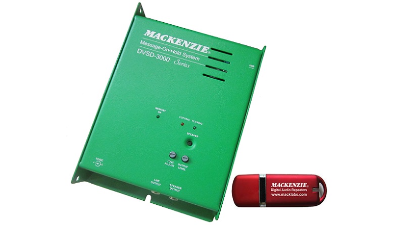 The DVSD-3000 is a highly reliable audio playback system designed specifically for Message On Hold applications. The system can play from an SD card or from a USB memory key. There are multiple audio outputs with level control, tone adjustment, and high quality sampling.