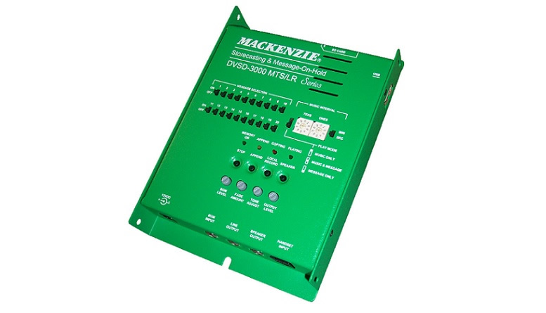 The DVSD-3000MTS/LR is a highly reliable audio playback system designed specifically for Message On Hold applications. The system can play from an SD card, or from a USB memory key. There are multiple audio outputs with level control, tone adjustment, and high quality sampling.