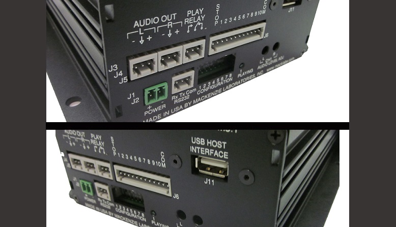 • Balanced audio output • Internal 1GB SD card • High speed USB 2.0 host port • Digital Transfer via USB key for easy audio file updates • Contact closure and RS-232 Control •
